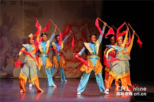 在當(dāng)晚的演出中,來自國內(nèi)多個(gè)藝術(shù)團(tuán)體的藝術(shù)家們?yōu)槁媚珒S胞們帶來了一臺充滿中國韻味的晚會,精彩的歌舞、器樂演奏、雜技和魔術(shù)表演將現(xiàn)場氛圍一次次推向高潮。
