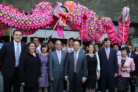 邱大使在致辭中表示,當前中拉、中墨關(guān)系處于歷史最好時期,雙方高層交往頻繁,政治互信持續(xù)加深,經(jīng)貿(mào)合作不斷深化,人文紐帶日益密切?!皣辉谟诿裣嘤H”,中墨人文交流在雙邊關(guān)系中發(fā)揮著溝通民心、加深了解、增進信任的重要作用。此次文化周活動首次在墨眾院舉辦,將中國文化帶進墨最高立法和民意代表機關(guān),有助于不斷拉近兩國人民心與心的距離。文化周也是中拉文化交流年框架下的重要活動,相信交流年的系列文化活動將不斷豐富中拉全面合作伙伴關(guān)系和中墨全面戰(zhàn)略伙伴關(guān)系的人文內(nèi)涵,為推動中拉、中墨關(guān)系取得更大發(fā)展進一步奠定民意基礎(chǔ)。