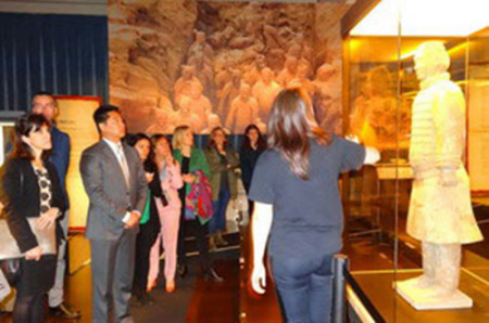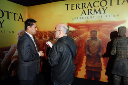 駐巴塞羅那總領(lǐng)事參觀秦始皇兵馬俑復(fù)制品巡展