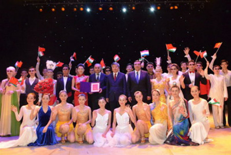 此次訪(fǎng)演系由塔總統(tǒng)拉赫蒙親自批準(zhǔn)邀請(qǐng),塔政府高度重視并給予了熱情友好的接待。駐塔吉克斯坦大使岳斌、塔總統(tǒng)社會(huì)事務(wù)助理拉赫蒙佐達(dá)、文化部長(zhǎng)奧魯姆別克佐達(dá)、廣播電視委員會(huì)主席比爾佐達(dá)以及外交部第一副部長(zhǎng)、經(jīng)貿(mào)部第一副部長(zhǎng)、教育部第一副部長(zhǎng)、人民民主黨副主席、人民民族和解運(yùn)動(dòng)第一副主席等塔政府眾多高級(jí)別官員、各國(guó)駐塔使節(jié)、塔各界人士以及旅塔華僑華人觀看了演出。