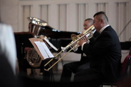 青島交響樂團(tuán)的藝術(shù)家們以銅管五重奏、弦樂四重奏、木管五重奏和小型管弦樂團(tuán)等形式,演奏了《中國花鼓》《掀起你的蓋頭來》《情深意長》《春江花月夜》,以及由樂團(tuán)首席小提琴劉玉霞與樂隊(duì)演出的小提琴協(xié)奏曲《梁?!?,每一首曲目都是由中國作曲家根據(jù)中國民歌改編的西方交響曲目,中國音樂之美贏得了全場的熱烈掌聲。