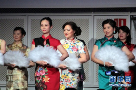 1月21日,挪威華人婦女在表演旗袍秀。當(dāng)天,挪威華人2017年春節(jié)聯(lián)歡晚會(huì)在首都奧斯陸附近的福內(nèi)布舉行。中國(guó)駐挪威大使館外交官、挪威政府官員、挪威華人華僑、留學(xué)生、學(xué)者、中資機(jī)構(gòu)人員等450多人歡聚一堂,共賞豐富的文藝表演。此次華人春晚由中國(guó)旅挪專(zhuān)家學(xué)者聯(lián)合會(huì)(CPN)主辦,其它眾多社團(tuán)協(xié)辦。