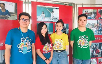從左至右,侯百謙、李婕、曹凡和曹相東在北京語言大學一同參加漢語教師志愿者的培訓。