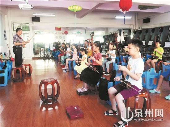 這個(gè)暑假,校園內(nèi)也沒安靜下來(lái),絲竹之音不時(shí)響起。南音興趣小組的同學(xué)們分成各個(gè)小組,在南音老藝人的指導(dǎo)下,學(xué)習(xí)琵琶、二弦、三弦、洞簫。該校蔡佩蘭老師介紹道:“這次的暑期少年宮,課程為期一個(gè)月。以往的南音課程,學(xué)生只學(xué)習(xí)唱的部分。現(xiàn)在增加了樂器。之后,學(xué)校將組建一支南音樂團(tuán)。”