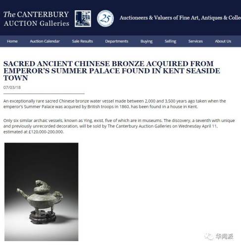 關于“虎鎣”是如何從圓明園流到英國的,在坎特伯雷拍賣行的官網(wǎng)上,有一個頁面,“赤裸裸”地介紹了“虎鎣”的來歷,這些內容都來自埃文斯寫給母親的家書。