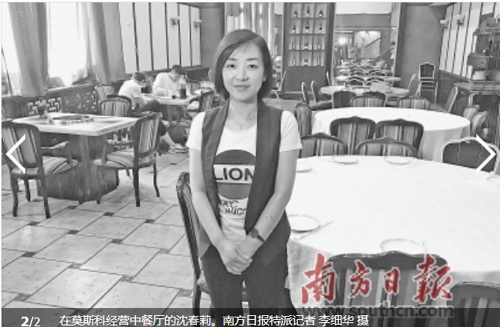 在來莫斯科之前,沈陽人沈春莉已經(jīng)有了豐富的餐飲行業(yè)從業(yè)經(jīng)驗(yàn)。最多的時(shí)候,她在一家餐廳管理著一個(gè)四五十人的團(tuán)隊(duì)。當(dāng)朋友告訴她有這樣一個(gè)機(jī)會(huì),在莫斯科管理一家中餐廳的時(shí)候,她想了想,還是下了決心過來了。