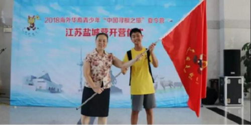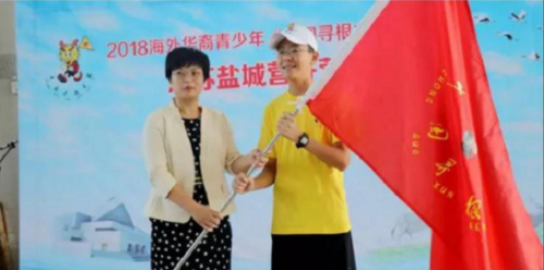 開營儀式上,江蘇省僑辦李紅處長、鹽城市外僑辦董玲玲主任分別為鹽中夏令營營員代表圣地亞哥華夏中文學校樂恩、市一中營員代表美國菁英學院張浩揚授旗,標志著2018海外華裔青少年“中國尋根之旅夏令營·江蘇鹽城營”正式開營。隨后來自鹽城中學和市一中的志愿者,為大家表演節(jié)目以示歡迎。