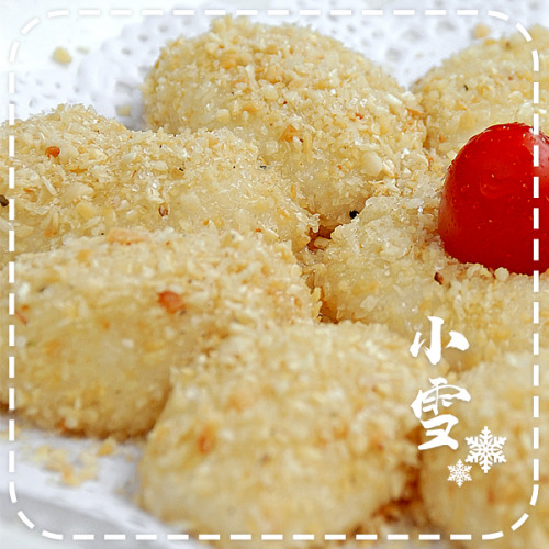 團(tuán)成一個個雪白的小球,