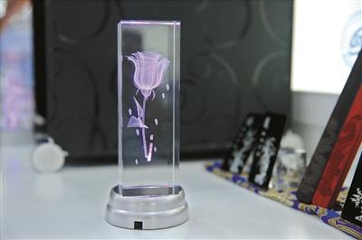 該校智能制造與裝備學(xué)院“鐳射特工”協(xié)會(huì)的陳宏鐸同學(xué)解釋,這朵玫瑰花是采用激光內(nèi)雕技術(shù)生成的。1朵玫瑰差不多由200多萬云點(diǎn)構(gòu)成,3分鐘左右可一次成型。