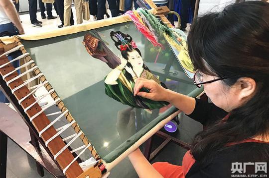 中國工藝美術(shù)大師現(xiàn)場展示湘繡雙面全異繡技藝(央廣網(wǎng)記者 堯遙 攝)