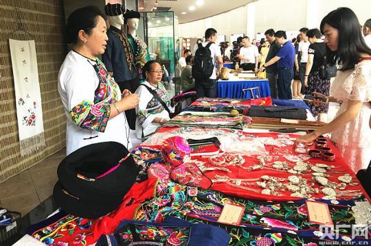 湖南省文化館內(nèi)的湘西苗繡及其產(chǎn)品展示(央廣網(wǎng)記者 堯遙 攝)