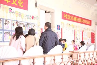 進(jìn)入展區(qū),人們就被充滿中國年味年俗的作品所感染。一幅氣勢(shì)恢弘的對(duì)聯(lián)首先映入大家眼簾。上聯(lián):傳承經(jīng)典展華夏風(fēng)采,下聯(lián):思學(xué)樂園現(xiàn)童年真趣,橫批:精彩大樂園”。對(duì)聯(lián)內(nèi),用五種形式表現(xiàn)幸福美滿的中國“福”字鑲嵌其中,成串的中國燈籠懸掛在對(duì)聯(lián)兩側(cè),一條中國龍燈矗立于前,喜慶歡樂的氣氛一下吸引了參觀人群。