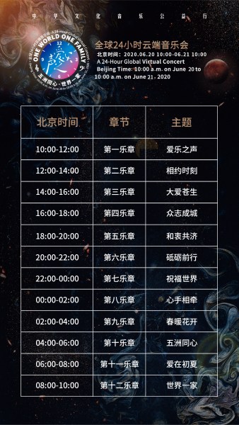與此前許多的云端音樂分享活動不同,本次音樂會24小時全球播出,從北京時間6月20日上午10點至6月21日上午10點,不間斷地上演形式多樣的線上文化大餐,營造多元化的音樂正能量,用音樂傳遞溫暖和力量。