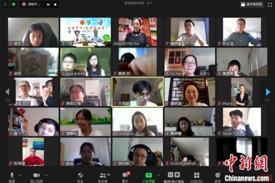 來自美國(guó)、德國(guó)、英國(guó)、愛爾蘭、西班牙、葡萄牙、荷蘭等國(guó)家的168名華裔青少年在線參與網(wǎng)上夏令營(yíng)“云開營(yíng)”儀式。(網(wǎng)頁截圖) 鐘欣 攝