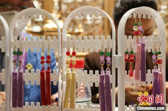 由中式服裝盤扣制成的耳墜展現(xiàn)非遺創(chuàng)新。張亨偉 攝