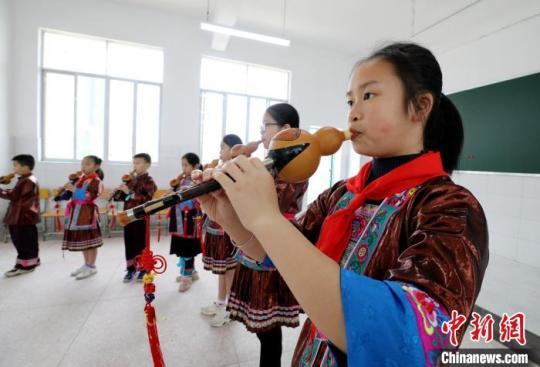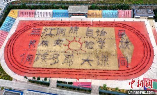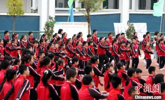 在廣西三江侗族自治縣民族實驗學(xué)校,學(xué)生們在跳多耶舞?!蔷殑?攝