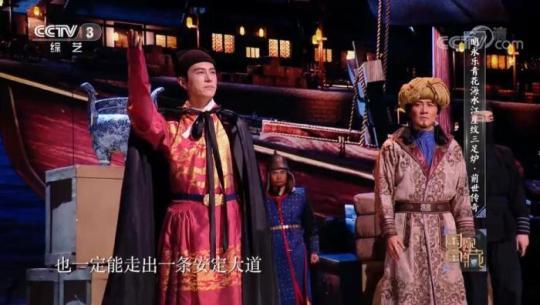 節(jié)目中,演員靳東在它的“前世傳奇”中出演明代著名航海家、外交家鄭和,紫禁城建成時多國使團來訪,他發(fā)現(xiàn)了一位中亞國家使節(jié)的異樣,最終成功用瓷器外交化解了一場危機,道出“天下安定,重在合作,齊心協(xié)力,守望相助”的大國胸懷。