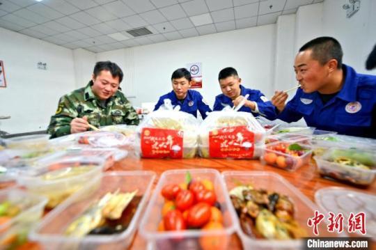 堅守崗位的消防員提前品嘗屬于自己的專屬“年夜飯”。林弘梫 攝