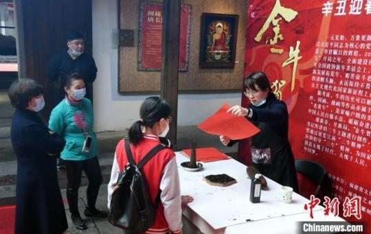位于福州南后街的福建省非物質(zhì)文化遺產(chǎn)博覽苑舉辦“非遺”木版年畫拓印體驗(yàn),吸引民眾參與。 劉可耕 攝