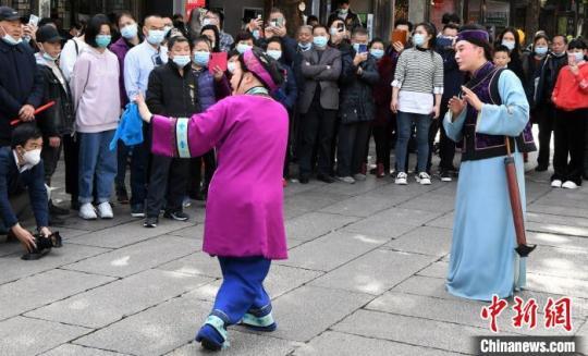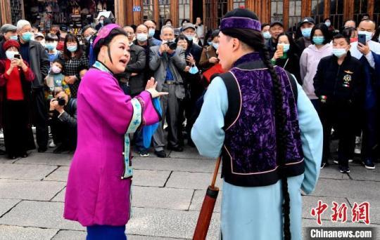 現(xiàn)場展演閩劇戲歌《七遛八遛遛福州》表演,吸引民眾觀看。劉可耕 攝