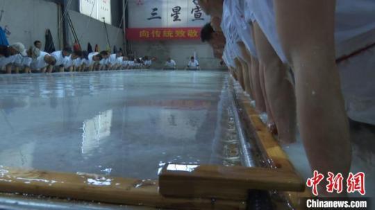 “我們此次制作四丈宣紙,撈紙工有56人、曬紙工20人、裁紙工6人,再加上制漿、打料加起來有100多人?!睕芸h三星紙業(yè)總經(jīng)理張必良說,“目前,傳統(tǒng)的宣紙制作工藝技術(shù)很成熟,但四丈宣紙還是第一次制作,撈紙的簾架子、抄制的二浪水,還有曬紙都給我們帶來了巨大挑戰(zhàn)。”