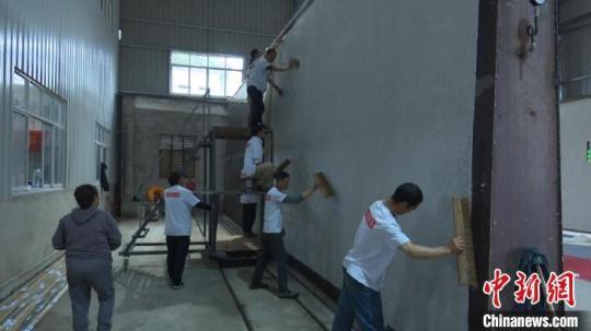 曬紙師傅們用紙刷把紙刷到高溫墻上烘干。劉鴻鶴 攝