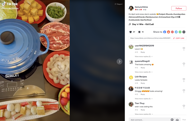 相比起來,@itsmunchtime 的火鍋就豐盛很多。桌面上排滿了肉、海鮮和蔬菜,打開鍋蓋,新鮮的肉下鍋,涮幾下?lián)瞥?,非常誘人。評論區(qū)很多人贊嘆“看起來好棒”、“可口”、“想吃”等等。