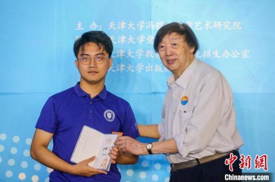 借新書首發(fā)之機,天津大學2021年首批本科生錄取通知書簽發(fā)儀式也在馮驥才文學藝術研究院舉行。中國工程院院士、天津大學校長金東寒當場簽發(fā)0001號錄取通知書,馮驥才先生也現(xiàn)場為這份通知書里的《天津文化地圖》簽名。