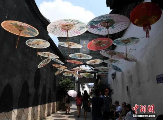 “福州三寶”之一的油紙傘讓三坊七巷更加充滿古香古色的味道。張斌 攝