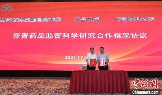 圖為甘肅省藥品監(jiān)督管理局分別與蘭州大學(xué)、中國藥科大學(xué)簽署了合作共建藥品監(jiān)管科學(xué)研究中心協(xié)議。 史靜靜 攝