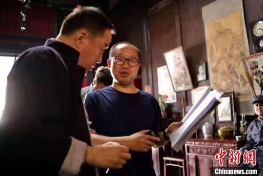 導(dǎo)演蒲劍(中)正在給演員說戲?!∈茉L者供圖