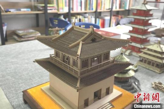 張禾制作的木制古建筑模型。張俊 攝