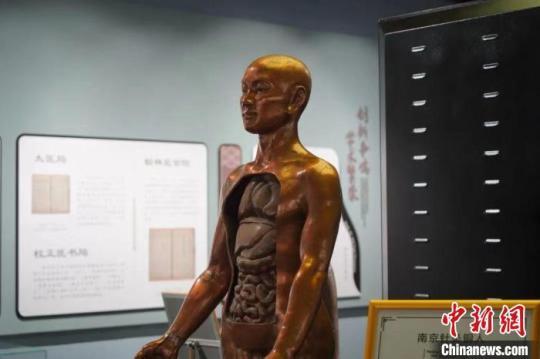 中國(guó)醫(yī)史館-南京針灸銅人?!∧暇┲嗅t(yī)藥大學(xué)供圖