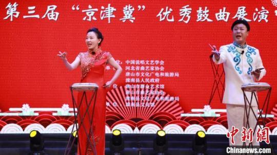 中新網(wǎng)唐山8月12日電 (白云水 孟潮) 一鼓一板一弦一人,九腔十八調(diào)說(shuō)唱世間百態(tài),這種演出方式正是國(guó)家級(jí)非物質(zhì)文化遺產(chǎn)樂(lè)亭大鼓呈現(xiàn)出來(lái)的。當(dāng)日,為期3天的河北省第四屆樂(lè)亭大鼓書(shū)會(huì)暨第三屆“京津冀”優(yōu)秀鼓曲展演活動(dòng)在河北唐山灤南縣舉辦。