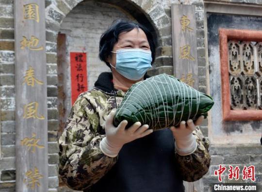 1月16日,在大蘆村的古宅里,村民粱受軒用一只整雞和糯米、綠豆一起包了一個(gè)大粽子,足有5斤重?!坝秒u做餡的大粽寓意生活吉祥如意、事業(yè)如日中天?!贝篝崭鐝堼埛艺f。(完)