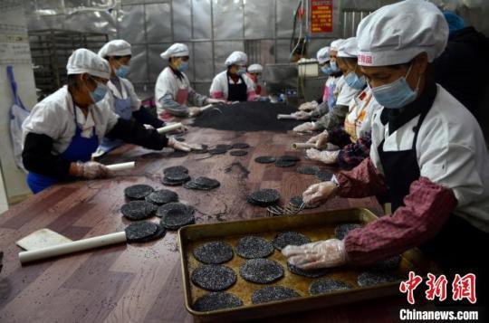 工人在趕制芝麻餅。翟李強(qiáng) 攝