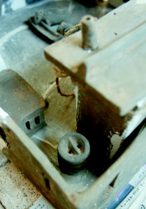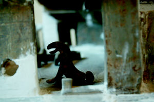 記者見到,這個陶制的四合園模型長60厘米,寬50厘米,高30厘米。門樓、東西廂房一應俱全;東面是帶有月亮門的廚房,西面是倉庫;豬、羊在院子里享用著“美食”;一條狗蹲在門外,另外兩條看門犬則在門里的陰涼下蹲著;西北角的石磨有精致的磨眼、磨道;甚至院子里的排水設(shè)施都清晰可見;房頂板瓦、筒瓦排列有序,上面雕刻著精美的圖案。