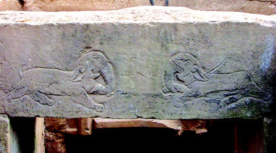 1號(hào)墓頂?shù)氖谏铣霈F(xiàn)了一對(duì)四蹄撒歡、相向飛奔的大象,雕刻手法雖不復(fù)雜,但時(shí)隔近1000年的今天,這對(duì)大象看起來卻依然神采飛揚(yáng),惟妙惟肖。特別是纏繞于大象脖子之上的一根長(zhǎng)飄帶,隨風(fēng)而動(dòng),讓觀者無不感到飄逸灑脫。
