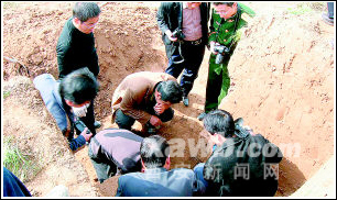 8日下午5時30分左右,五郡西村在村子北邊已經(jīng)修了幾天的水渠快要完工了,6位農(nóng)民拉完最后一車土也準(zhǔn)備收工。可在鏟土的過程中他們聽見“咣”地一聲,大家都以為是鐵鍬碰到石頭上了,可刨出來一看,地里埋的東西發(fā)出耀眼的青綠色光芒,“這是青銅器啊!”他們發(fā)出了這樣的驚嘆。再輕輕一刨,又露出了很多,他們看到有編鐘、簋,還有斗,“原來村子出土過青銅器,我們見過,所以一看這就是文物,就商量著要趕緊報告上面,還找來紙筆大概登記了一下!睕]有任何猶豫,劉銀科和劉東林去打電話,其他幾位留守在現(xiàn)場,“走的時候還約定:現(xiàn)場的人不得少于三個。而且沒給任何人說,連我媳婦都不知道。”樸實的劉銀科告訴記者。