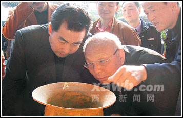 11月8日下午5時30分,陜西省扶風(fēng)縣城關(guān)鎮(zhèn)五郡西村6位農(nóng)民一鐵鍬鏟下去,一個青銅器窖藏驚現(xiàn)在眼前。當(dāng)?shù)匚奈锊块T立即進(jìn)行搶救性清理,共出土青銅器27組件,共有銘文255字。文物專家稱這些文物為研究當(dāng)時社會提供了不可多得的實物依據(jù)。