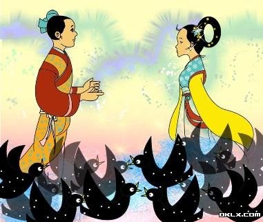 被稱(chēng)為“中國(guó)情人節(jié)”的七夕剛過(guò)去不久,有關(guān)牛郎織女的傳說(shuō),在中國(guó)家喻戶(hù)曉,流傳千古。話說(shuō)牛郎是凡間一位忠厚的小伙子,父母早亡,織女則是天上神仙,一天和諸仙女下凡游戲,認(rèn)識(shí)牛郎并互生情愫。后來(lái)織女偷偷下凡,做了牛郎的妻子,男耕女織,生活幸福。但是好景不常,此事讓天帝知道,王母娘娘強(qiáng)令織女回到天上,恩愛(ài)夫妻被拆散。牛郎拉著兒女,一起騰云駕霧上天去追織女,眼見(jiàn)就要追到了,豈知王母娘娘拔下頭上的金簪一揮,一道天河把牛郎織女分隔兩岸,他們的忠貞愛(ài)情感動(dòng)了喜鵲,千萬(wàn)只喜鵲飛來(lái),搭成一道鵲橋,結(jié)果是王母娘娘開(kāi)恩,允許兩人在農(nóng)歷七月七日這天相會(huì),由此形成了七夕節(jié)。