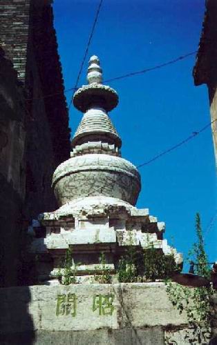 聳立在西津渡古街街心的昭關(guān)石塔,是一座俗稱(chēng)“喇叭塔”或“瓶形塔”的灰白色石塔。石塔由下部的云臺(tái)及上部的石塔構(gòu)成,總高度8.635米,云臺(tái)設(shè)4門(mén)通向東西南北四方,石塔由二重亞字形須彌座及塔身構(gòu)成,大體上與北京白塔寺相似,它是我國(guó)唯一保存完整的元代過(guò)街石塔。