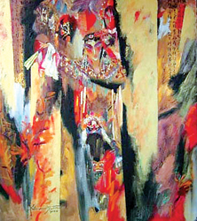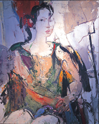 意大利方面展出兩位藝術(shù)家的作品。一位是桑德羅·特勞蒂,現(xiàn)年72歲,羅馬美術(shù)學(xué)院終身教授,早年學(xué)習(xí)未來(lái)主義,后來(lái)又從抽象轉(zhuǎn)向具象,20世紀(jì)90年代起,成為新野獸主義的代表之一。另一位是出生在意大利名城芬奇市的畫家尼其達(dá),現(xiàn)在任教于佛羅倫薩利貝拉美術(shù)學(xué)院,他創(chuàng)作的具有表現(xiàn)主義特色的女性形象,既有絢麗的色彩,又有人物若隱若現(xiàn)的表情,在西方繪畫中,是比較含蓄的表達(dá),體現(xiàn)了詩(shī)一般的意境。