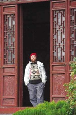 藍眼睛,栗色頭發(fā),卻心甘情愿地成為昆曲“流浪漢”。他的手細而白,他很自豪,自認為可以演花旦。可再看一眼他的絡腮胡子,你就“絕望”了。他不介意,依舊執(zhí)著地“扎根”昆曲,還當起“傳教士”。“我用英語向外國人宣傳昆曲,用中文向中國人宣傳昆曲!