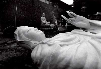 佛像倒塌在路旁、高速公路旁邊出現(xiàn)一座高大的恐龍雕像……中生代攝影家姚瑞中通過(guò)相機(jī),將臺(tái)灣現(xiàn)實(shí)表現(xiàn)出一種“超現(xiàn)實(shí)”的味道,這些場(chǎng)景讓人感覺(jué)既熟悉又陌生。