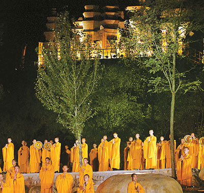 華聲報鄭州消息:10月17日晚,大型山地實景文藝演出《禪宗·少林》音樂大典,在距嵩山少林寺7公里處的少室山待仙溝首次正式公演,成為正在此間進(jìn)行的第二屆世界傳統(tǒng)武術(shù)節(jié)的一大亮點。