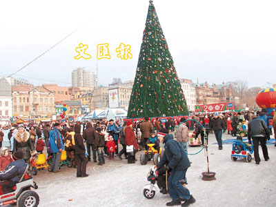 | 濱海州市政廣場上,俄市民歡度元旦佳節(jié),而在這里從事零售業(yè)的華商卻無論如何也樂不起來。 |